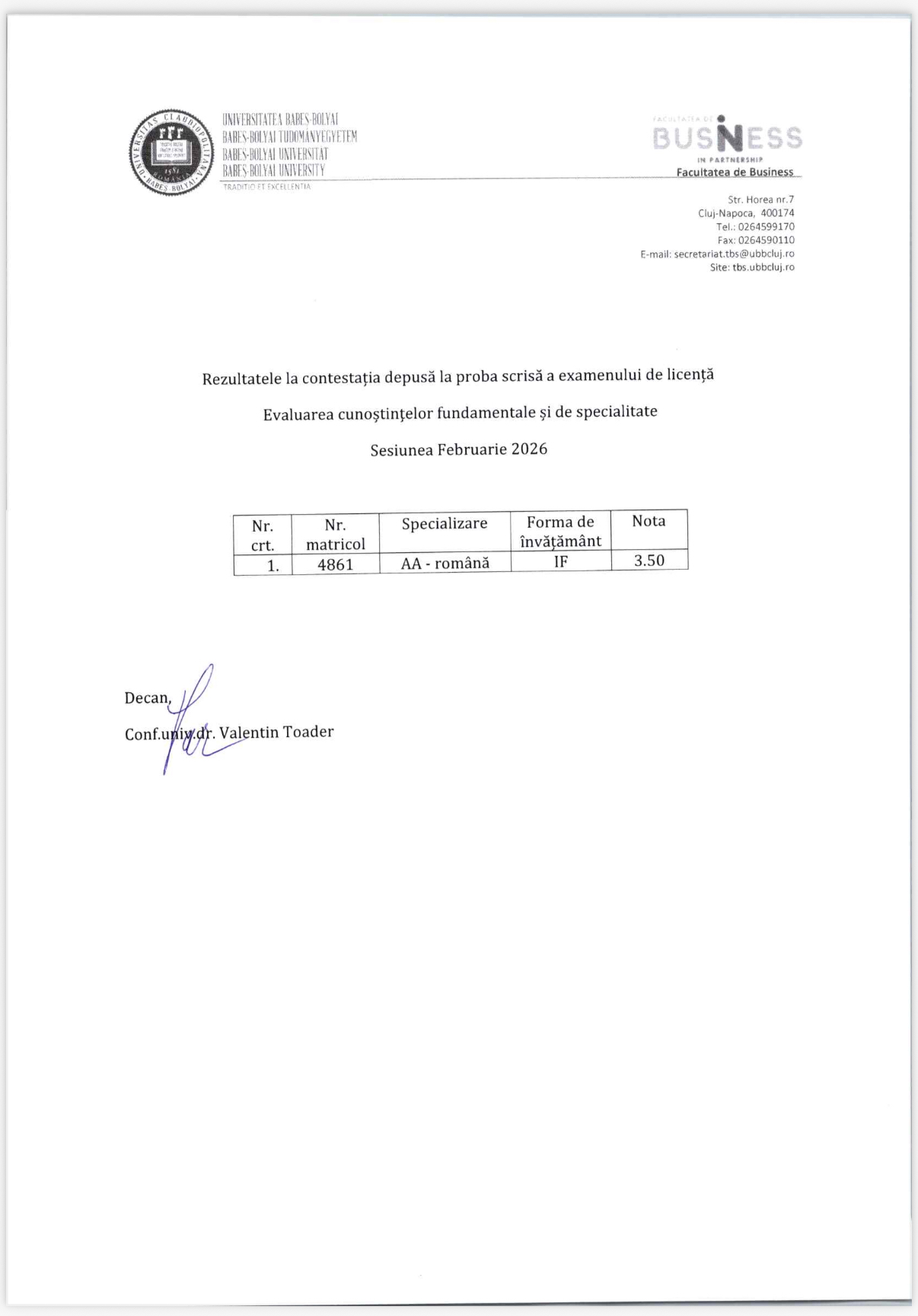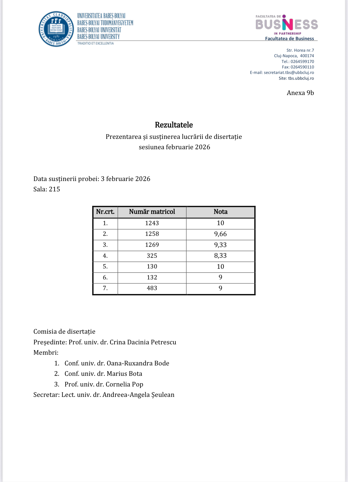 Licență și disertație – Sesiunea Februarie 2026